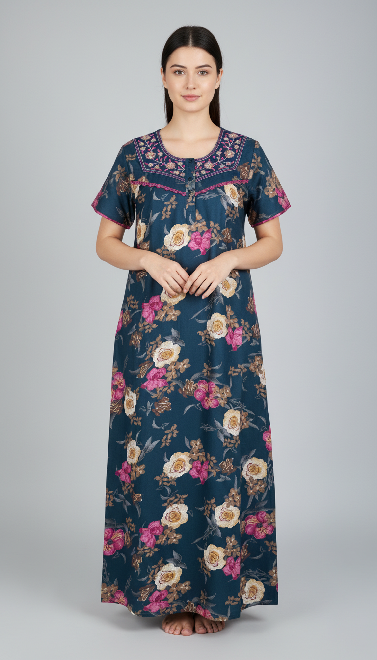 Perfect for daily wear, summer nights, and all-day lounging, the ALPINE Long Nightgown is a must-have addition to every womanâs nightwear collection.