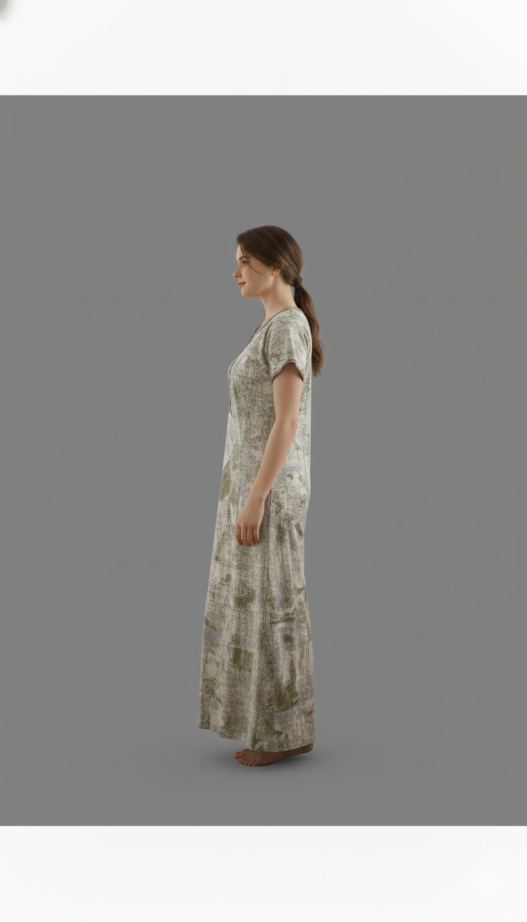 🌸 Alpine Women’s Printed Long Nightgown | Short Sleeves | Full-Length | Side Pocket | Soft Comfortable Nightwear