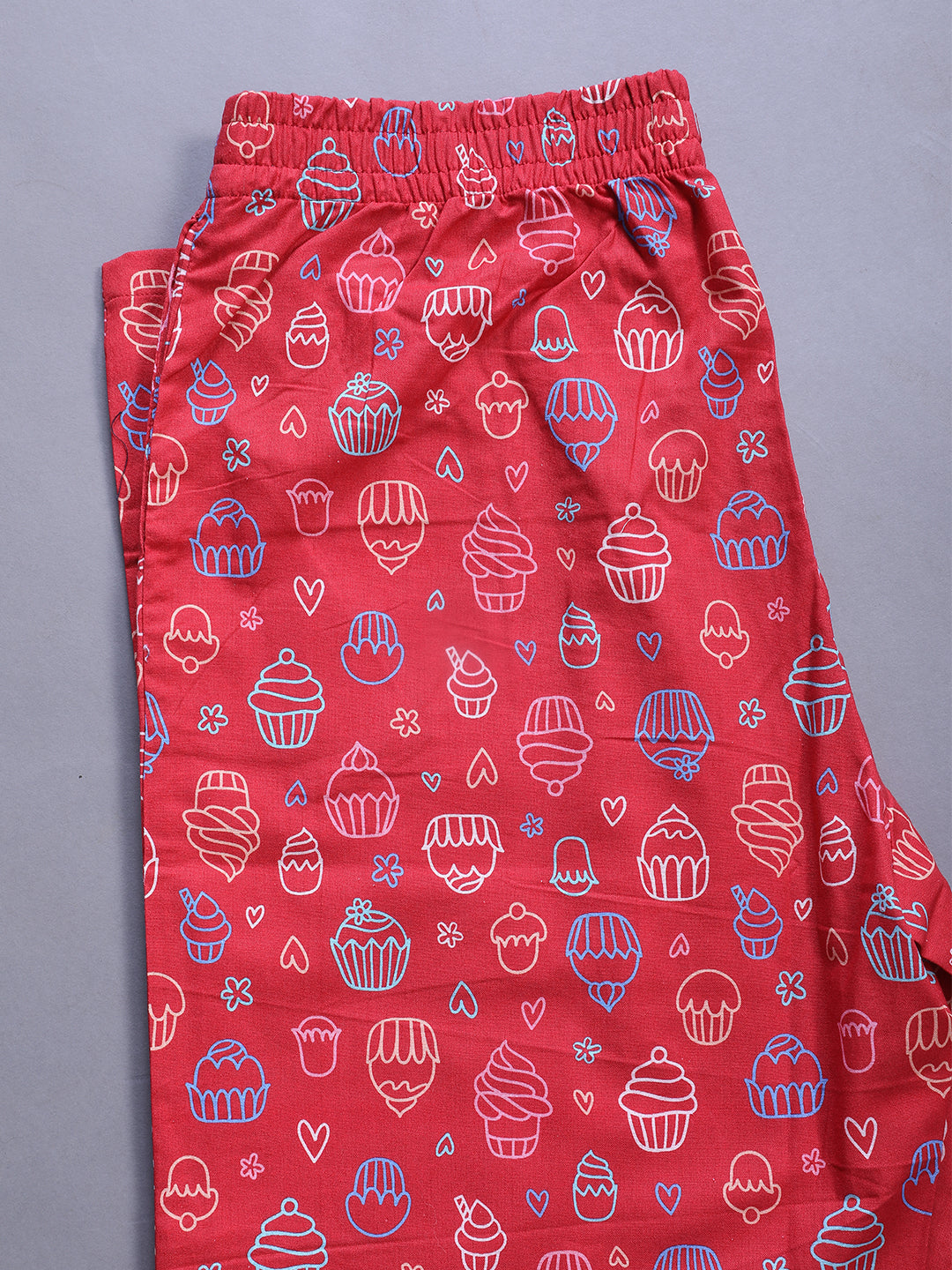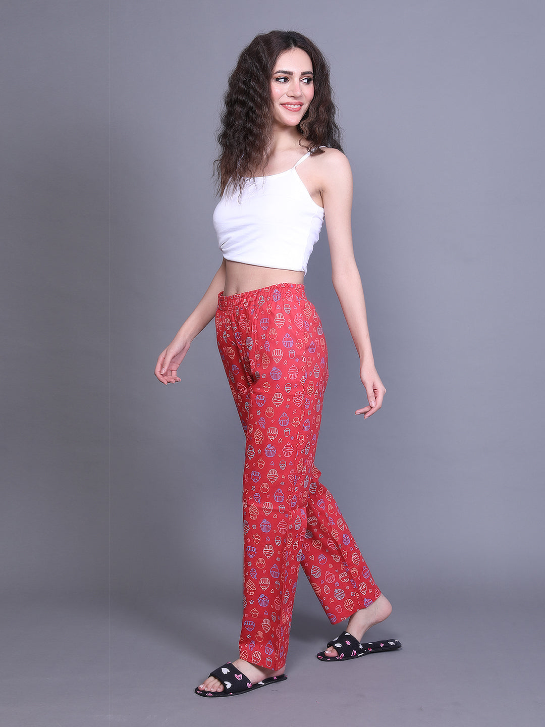 Women's Cotton Printed Pyjama Relaxed Lounge Pants With Pockets