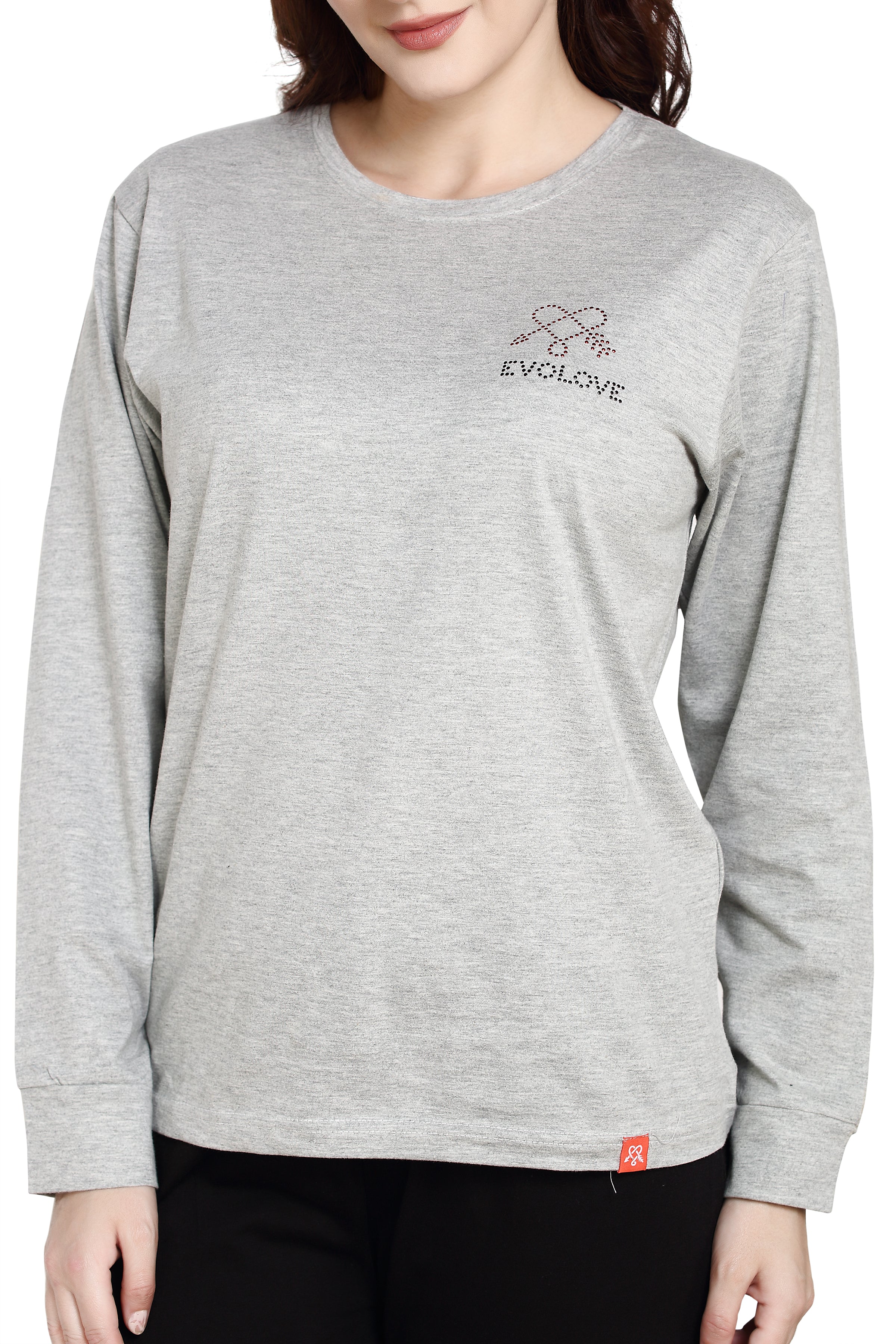evolove Grey Round neck evolove Print Women's Full sleeve (Pajama set) Night suit