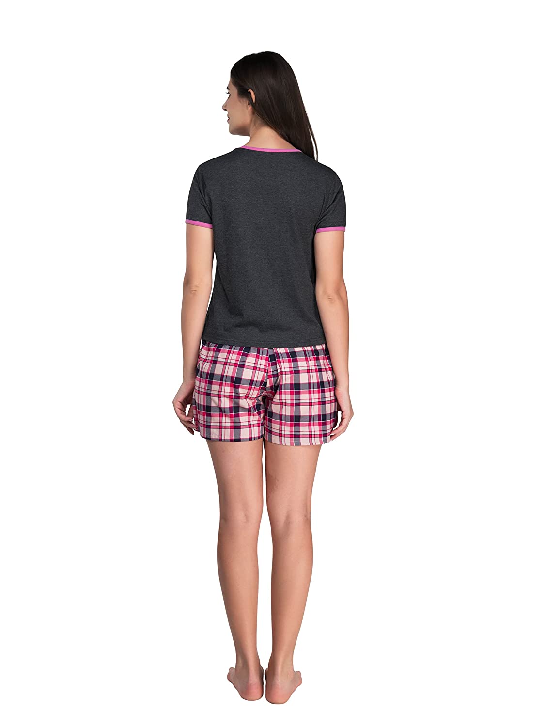 Evolove Shorts and Tshirt Set for Women Girls Ladies Stylish Night Wear Suit Dress with Pockets Elastic Waist Cotton Checks Pattern Super Soft Comfortable ( S to 2XL Size )