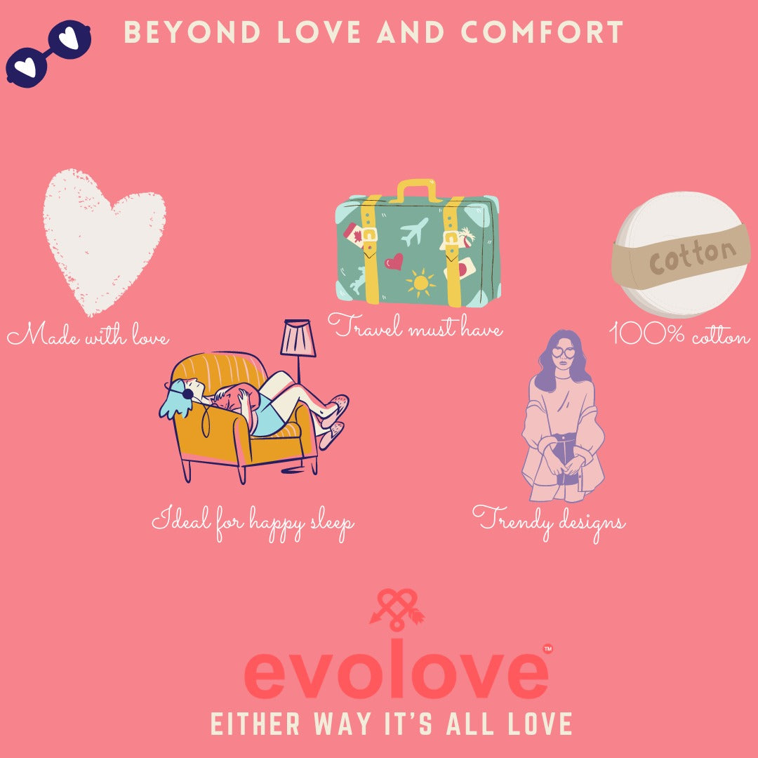 Be it a selfie time or while sleeping at Nighttime or evening walk or a casual daily day wear while working at home, go for a pajama party, or use as a travel essential, use it while your yoga sessions or just chilling out with your besties evolove Nightsuit will make sure you feel cosy &伣 comfortable all the time.