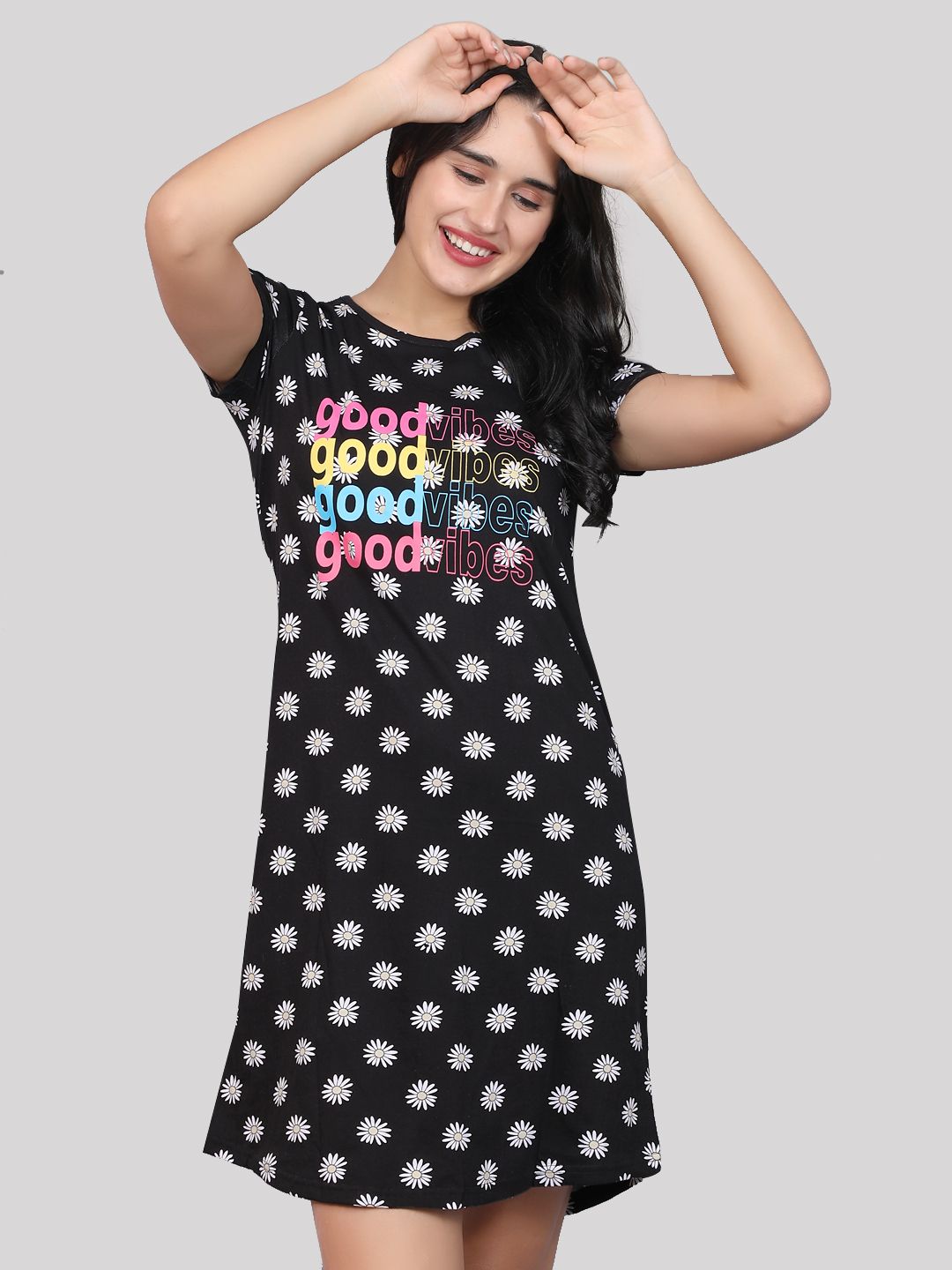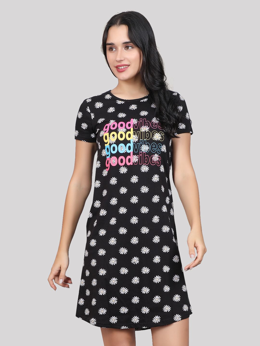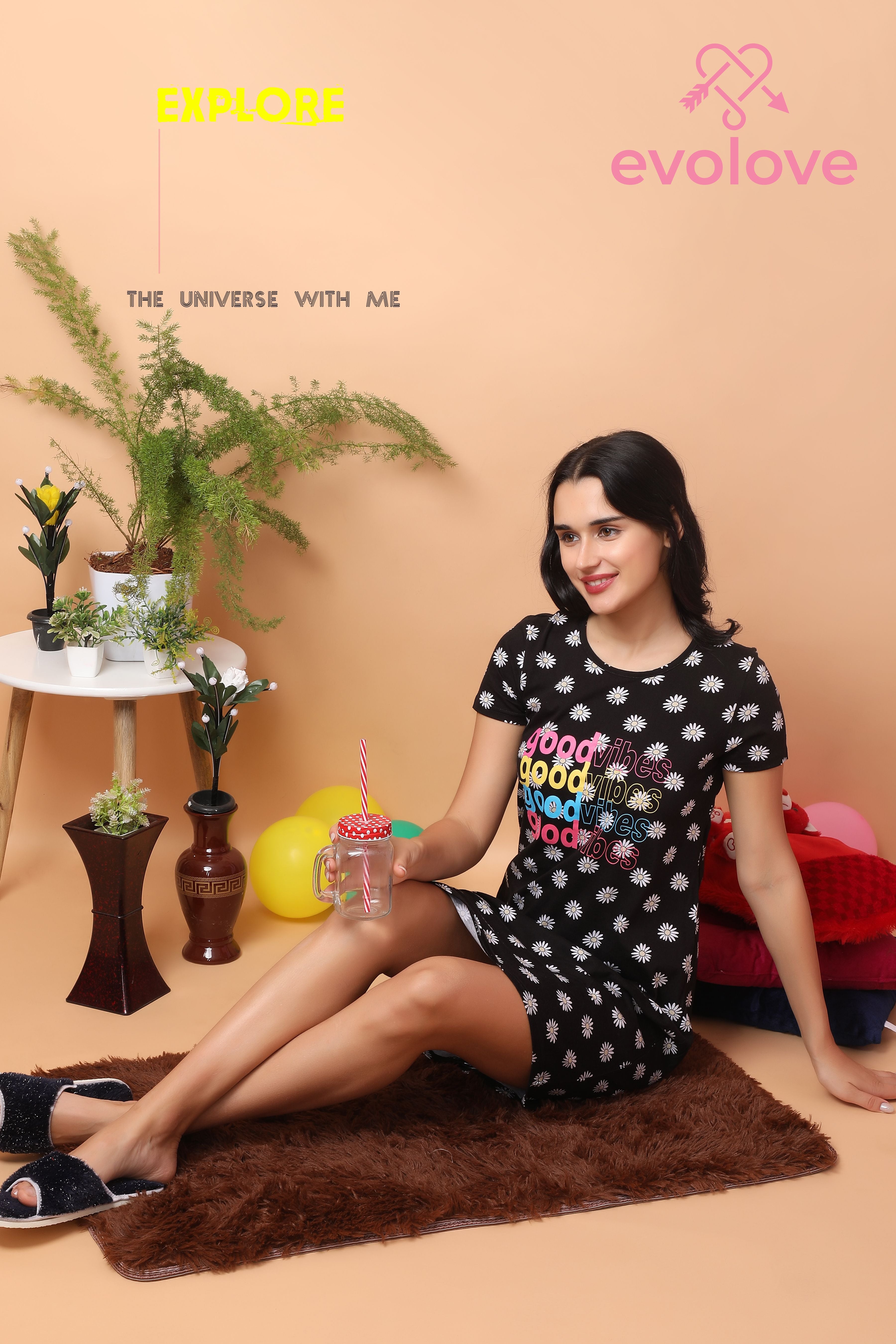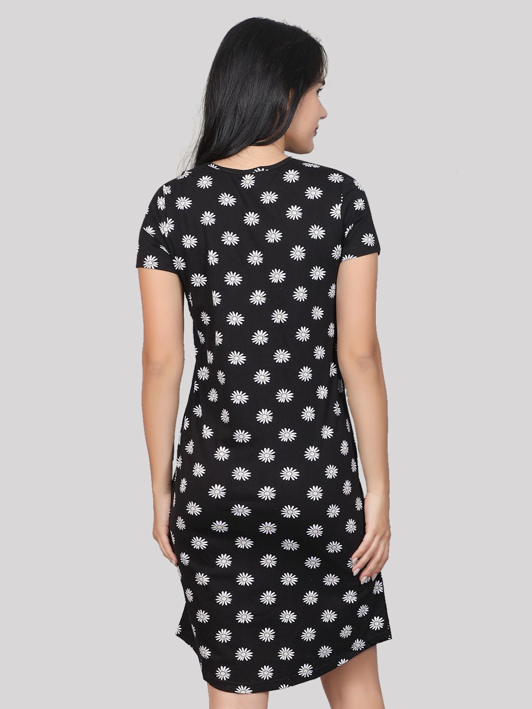 Evolove Women's 100% Cotton Printed Knee Length Casual Regular Short Nightgown