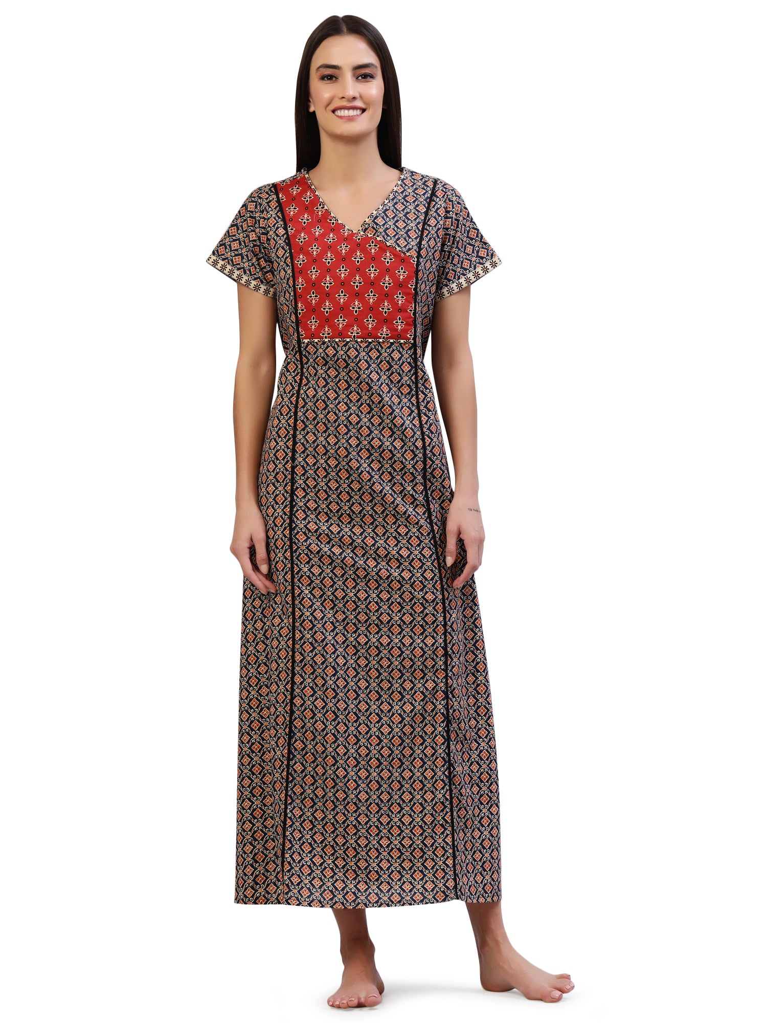 Evolove Women's 100% Cotton Printed Maxi Nightgown Long Nighty Sleepwear for Ladies Super Soft Comfortable Design