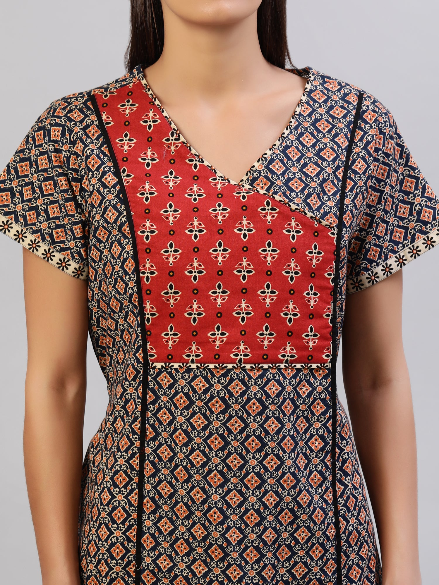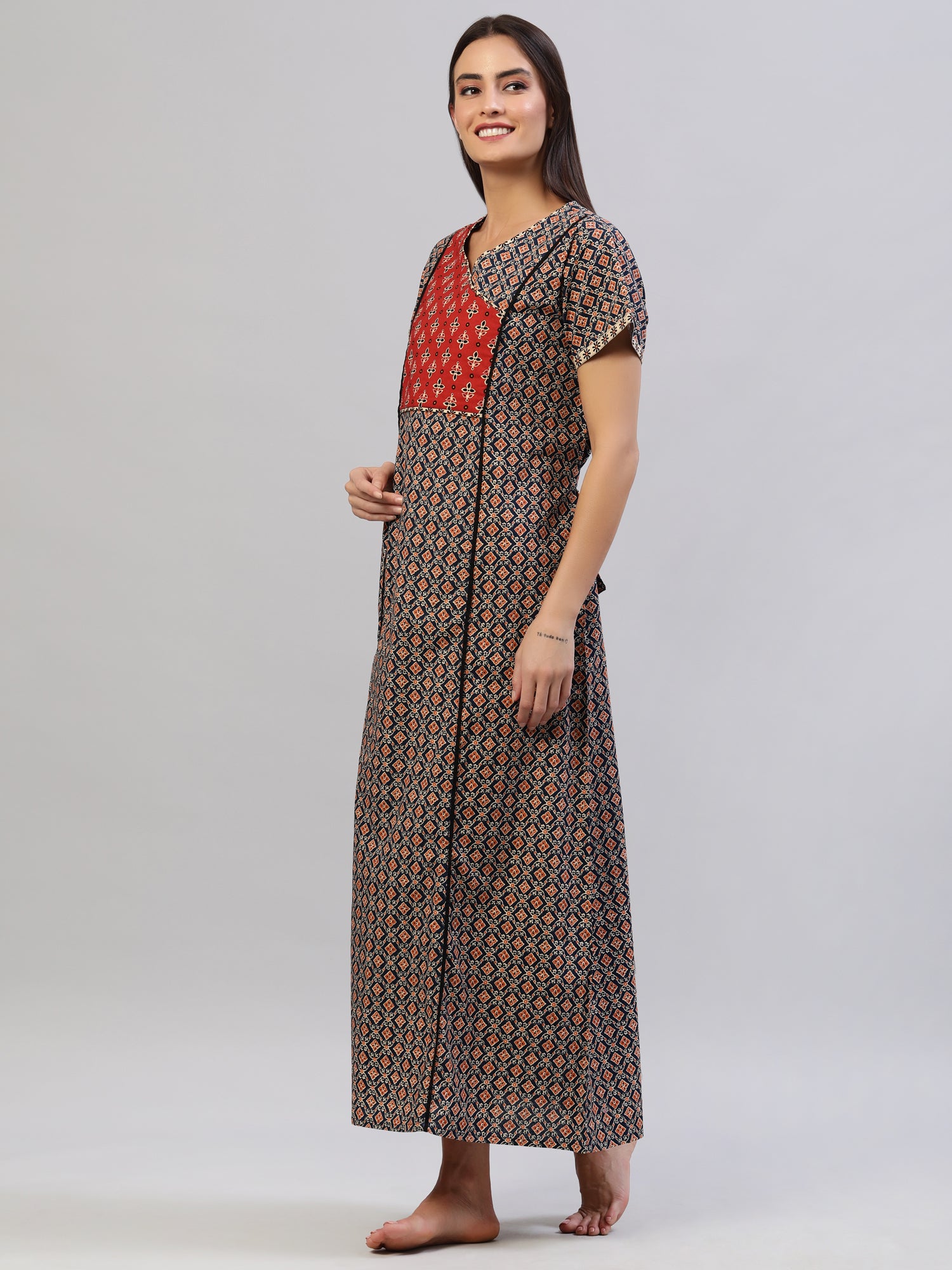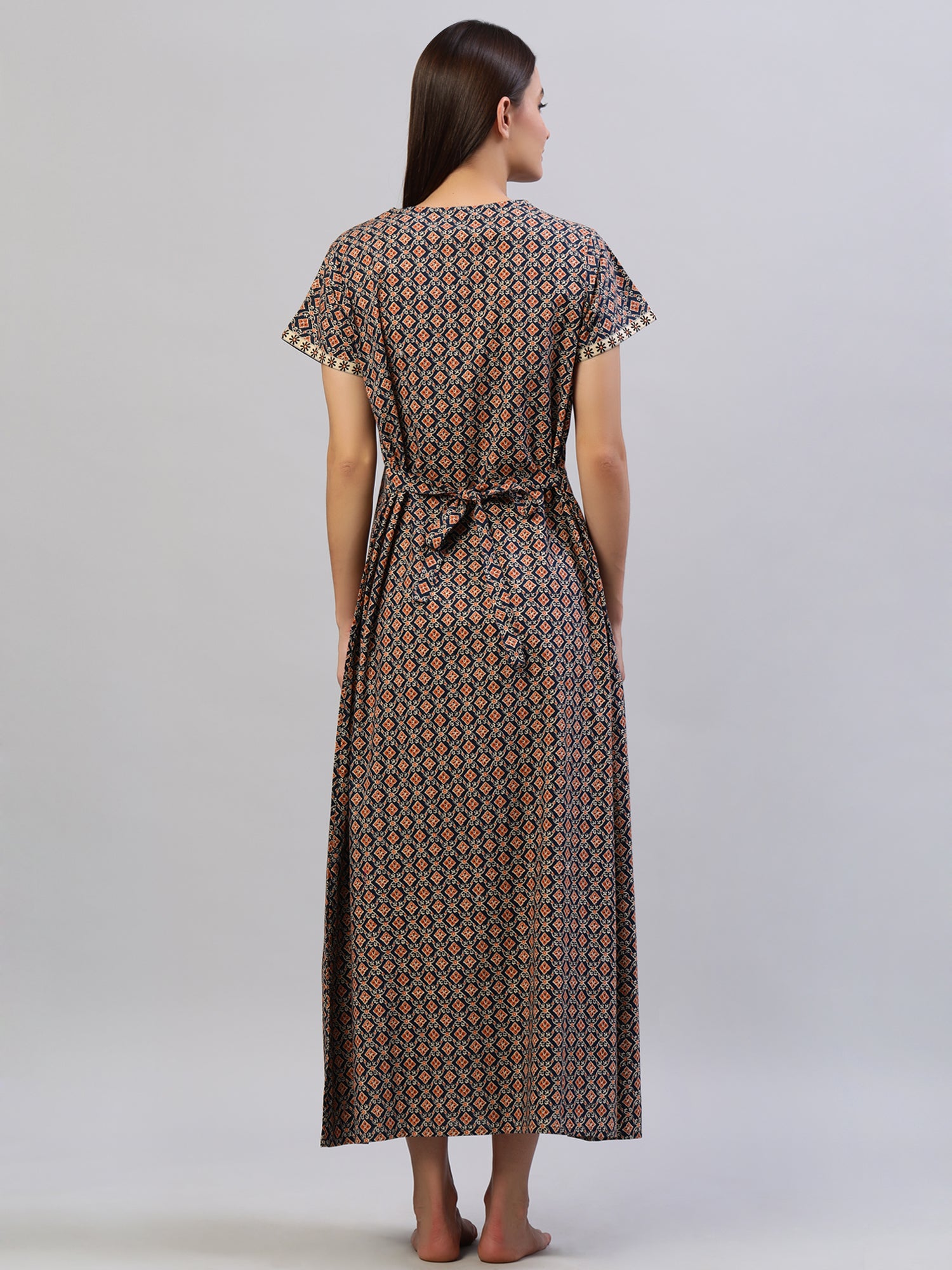 - Design & Style : The Pull On Closure Maxi or Nighty has Side Pocket to keep your Phone or Other Goodies Safe; Dark & Light Blue in Colour & Floral Embroidery Printed Stylish Design work done.