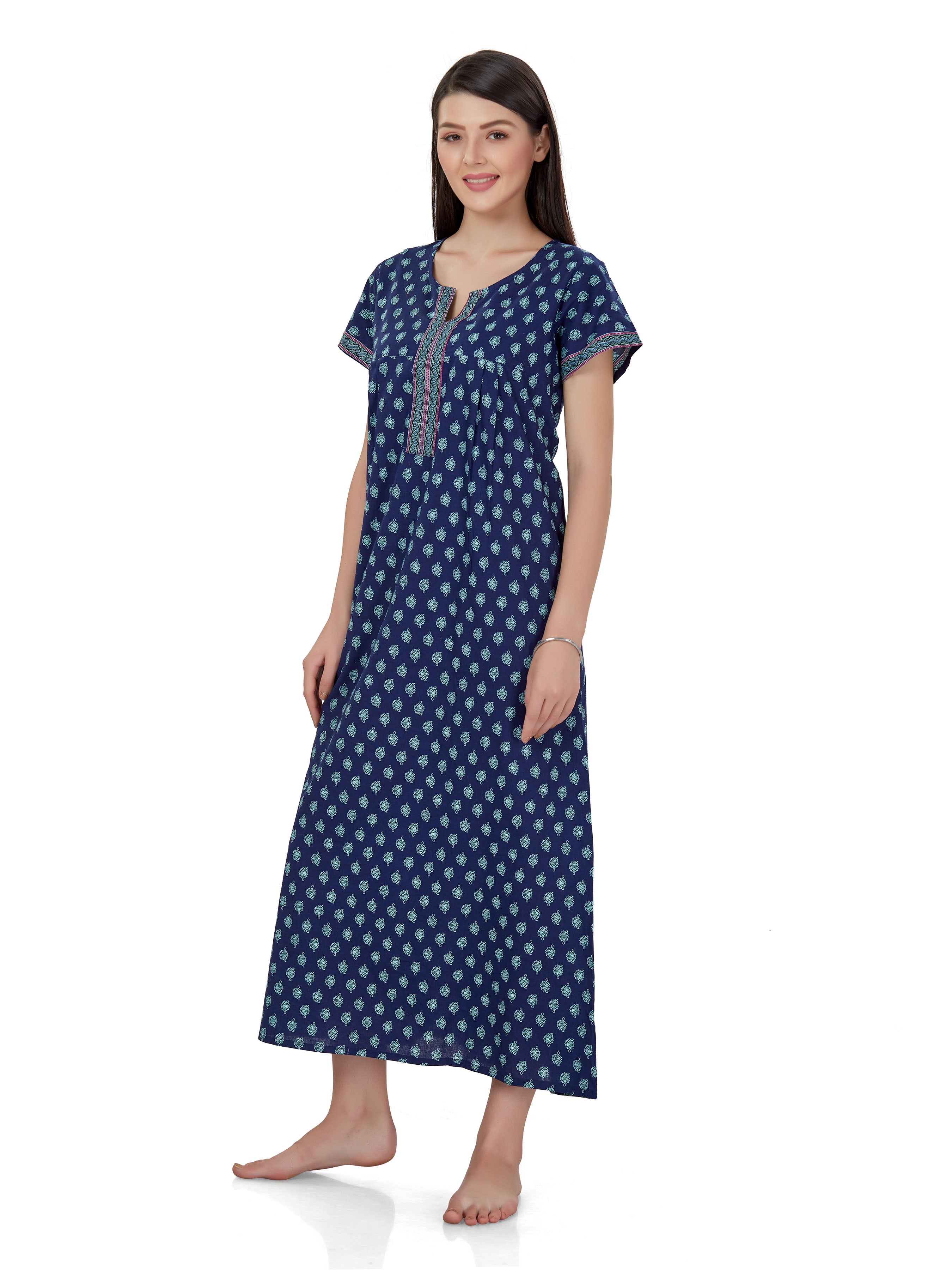 Evolove Women's 100% Cotton Printed Maxi Nighty Sleepwear Super Comfortable & Soft Cotton
