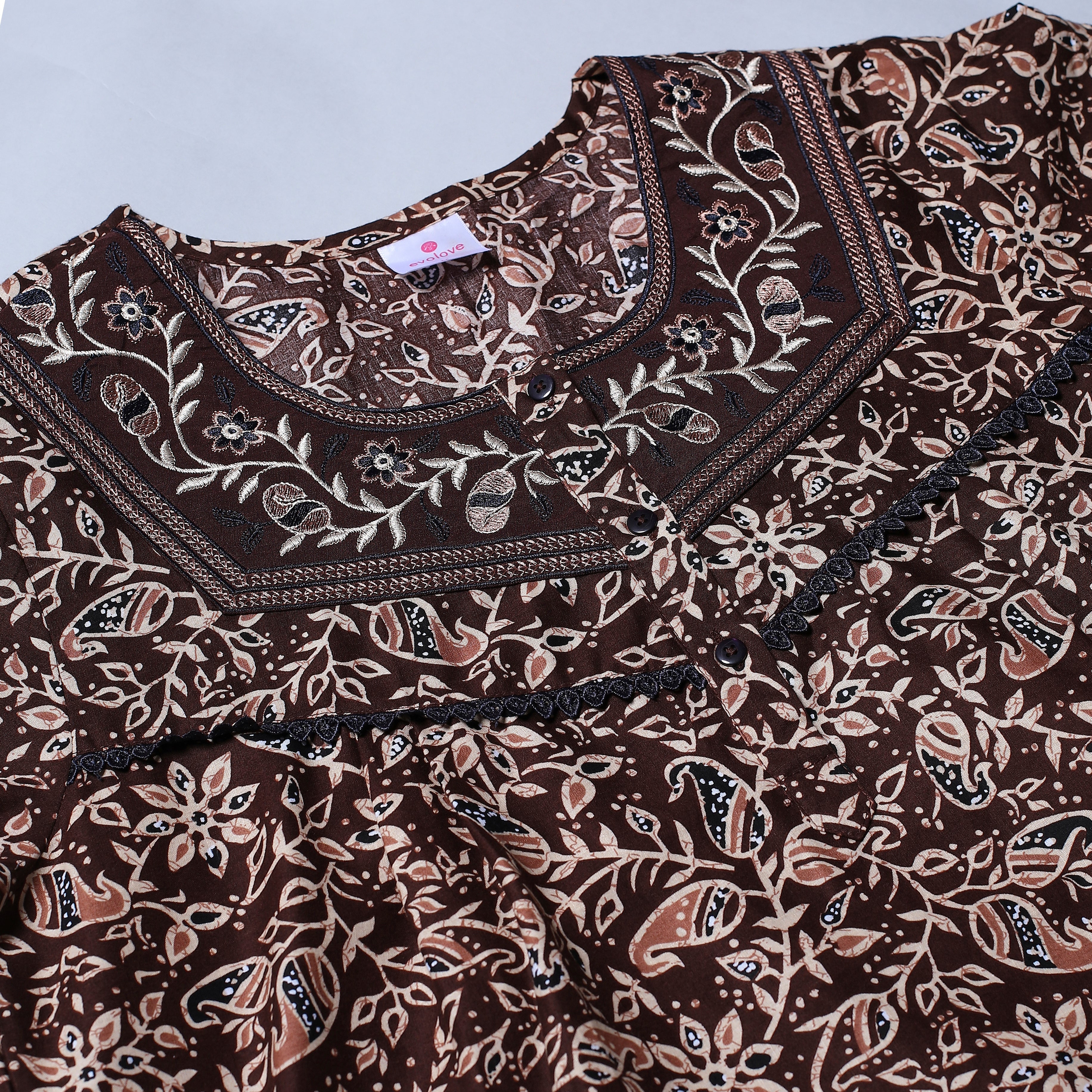 .Care Instructions: Machine WashFit Type: Relaxed Design & Style : The Pull On Closure Maxi or Nighty has Side Pocket to keep your Phone or Other Goodies Safe; Red & Dark Brown in Colour & Floral Printed Stylish Design work done Fabric : 100% Cotton soft fabric for Maximum Comfort; Stretchy, Soft and Gentle on the Skin; Wrinkle Free Size : The Nighty is a Large one with a Chest Size of 44 Inches; The Length is 55 Inches and the Sleeves are 6.75 Inches long Comfort : Relaxed Loose Fit; A classic everyday style, this Nightgown hugs your body with Relaxed Comfort; Roomy Slipover styling gives you Room to Move; Allows you to Stretch your Arms & Legs Freely, without feeling constrictive Wash Care: Machine Wash & Do not Bleach; Tumble Dry Low; Wash Dark Colour Separately & Warm Iron