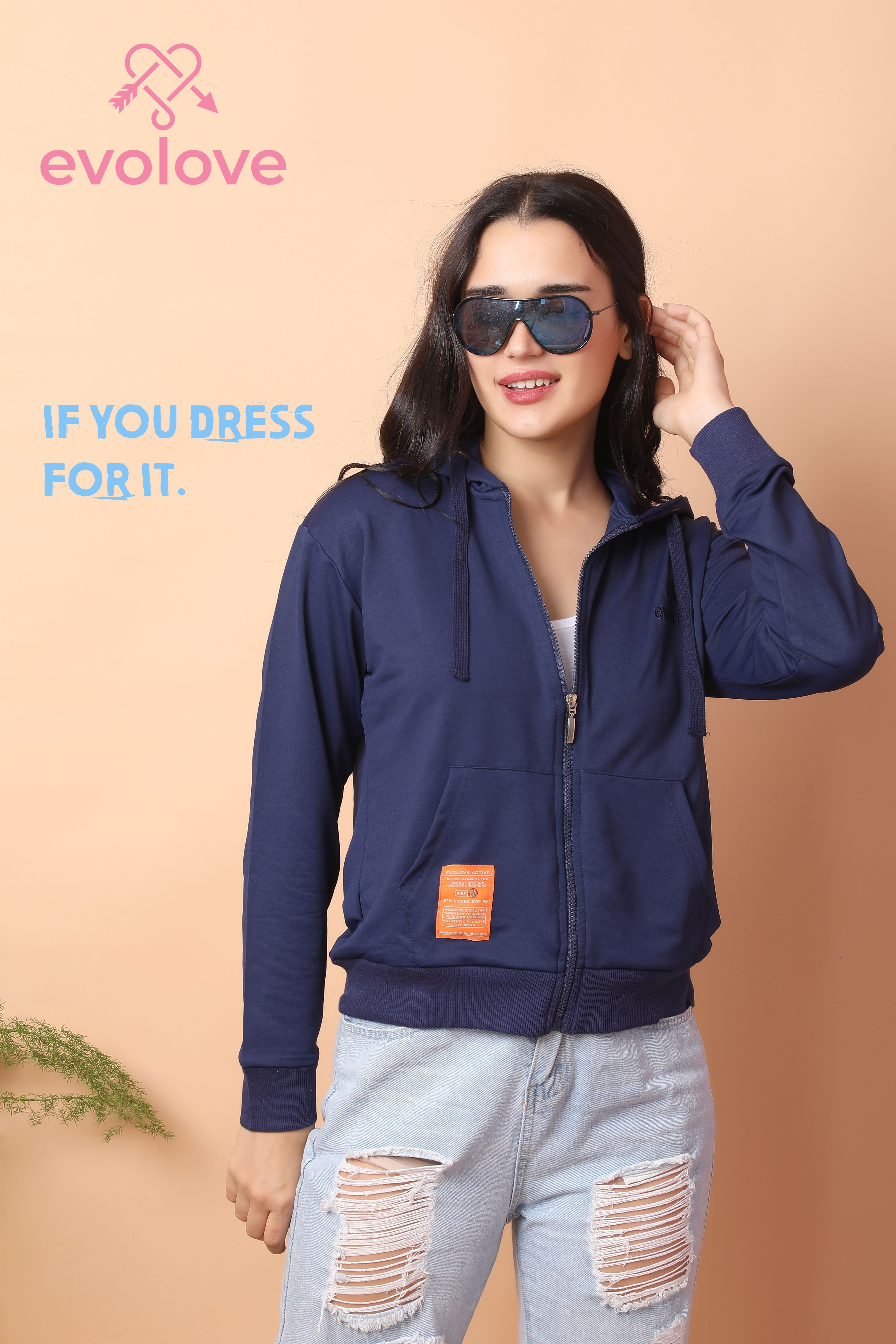 Evolove Women's Cotton Fleece Round Neck Hooded Winter Wear Long Sleeve Sweatshirt