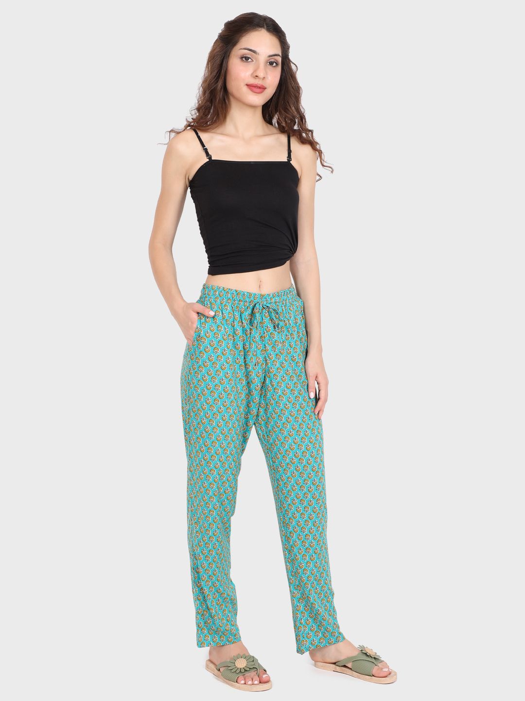 Evolove Women's Cotton Printed Pajama Relaxed Lounge Pants With Pockets (Teal)