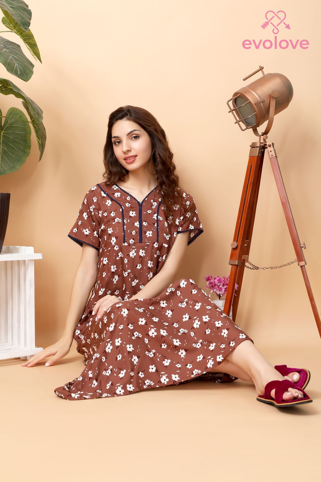 In a shade of beautiful featuring printed design, this nightdress from Evolove is drop dead gorgeous. Complete with a Stylish Design work on neck, this piece is the most stylish and comfortable nightwear choice.伣.