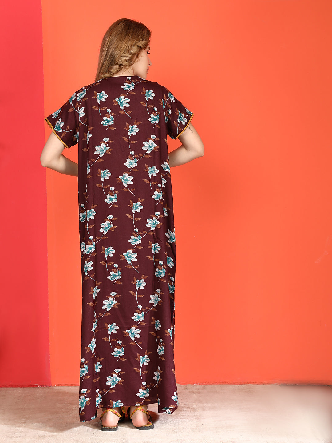 🌸 Evolove Alpine Nighty with Side Pocket & Neckline Embroidery | Full-Length | Side Pocket