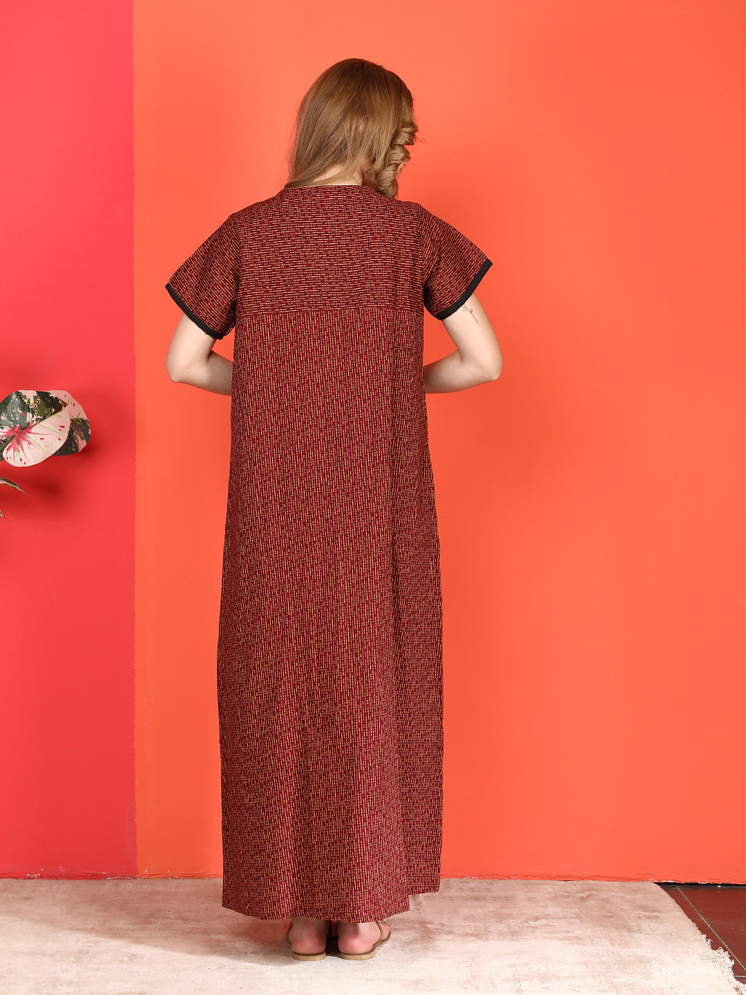 🌸 Evolove Cotton Nighty Maxi for Women Printed Short Sleeves | Full-Length | Side Pocket