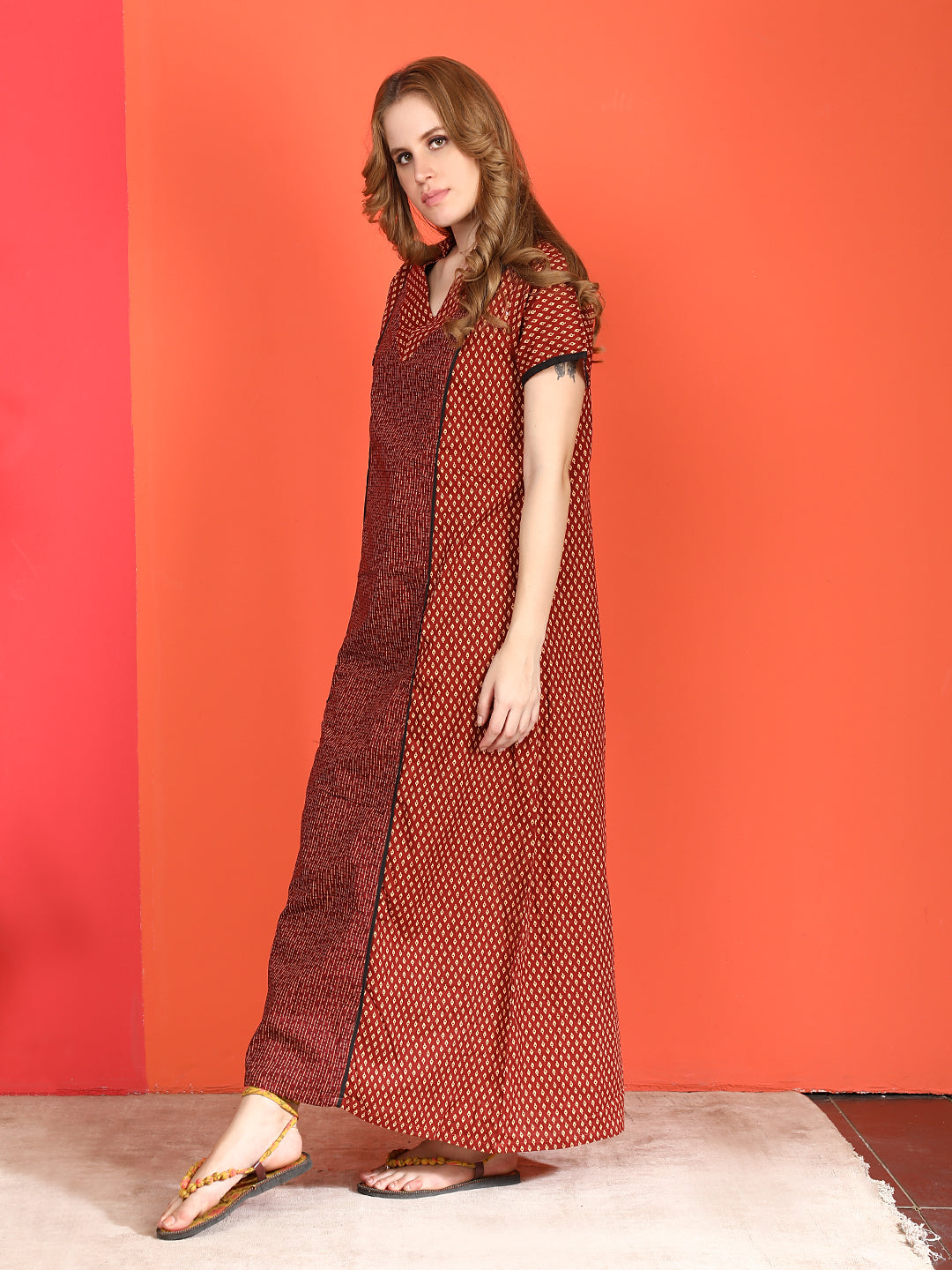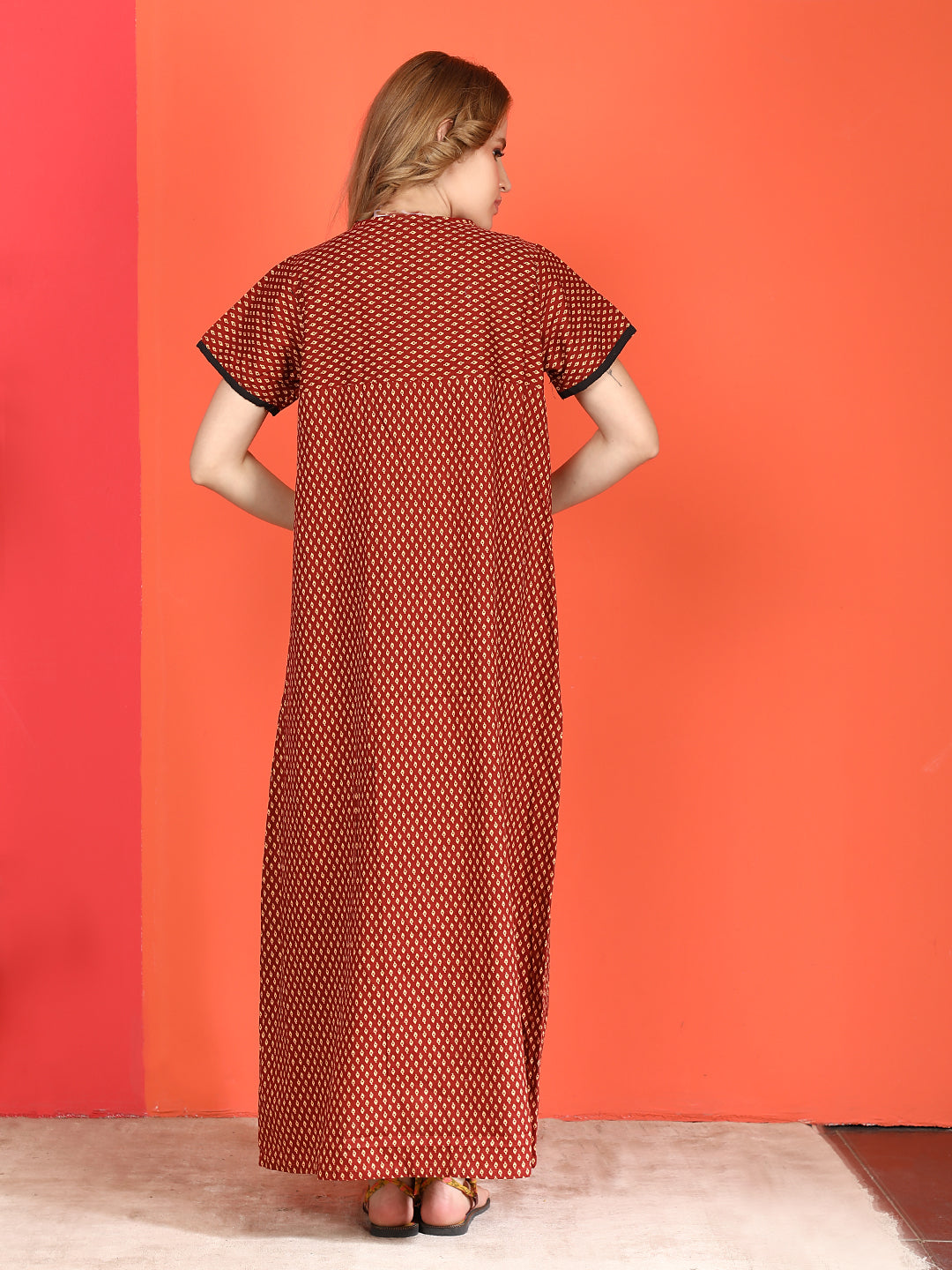 🌸 Evolove Cotton Nighty Maxi for Women Printed Short Sleeves | Full-Length | Side Pocket