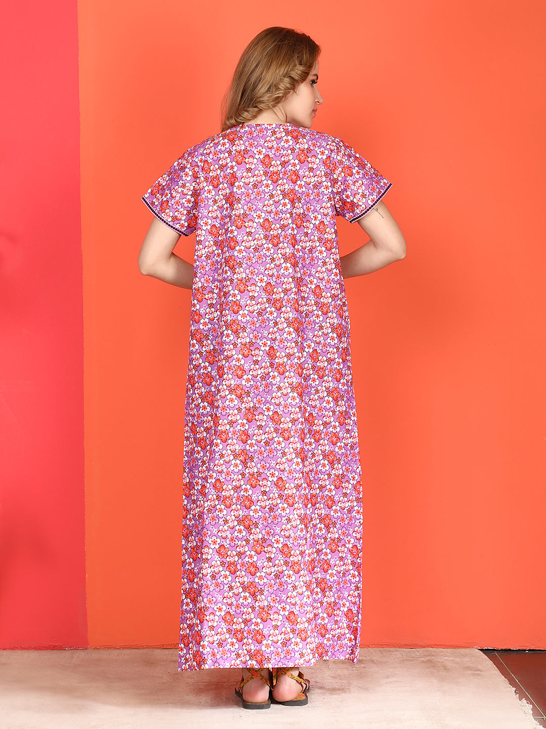 🌸 Evolove Cotton Nighty Maxi for Women Printed Short Sleeves | Full-Length | Side Pocket