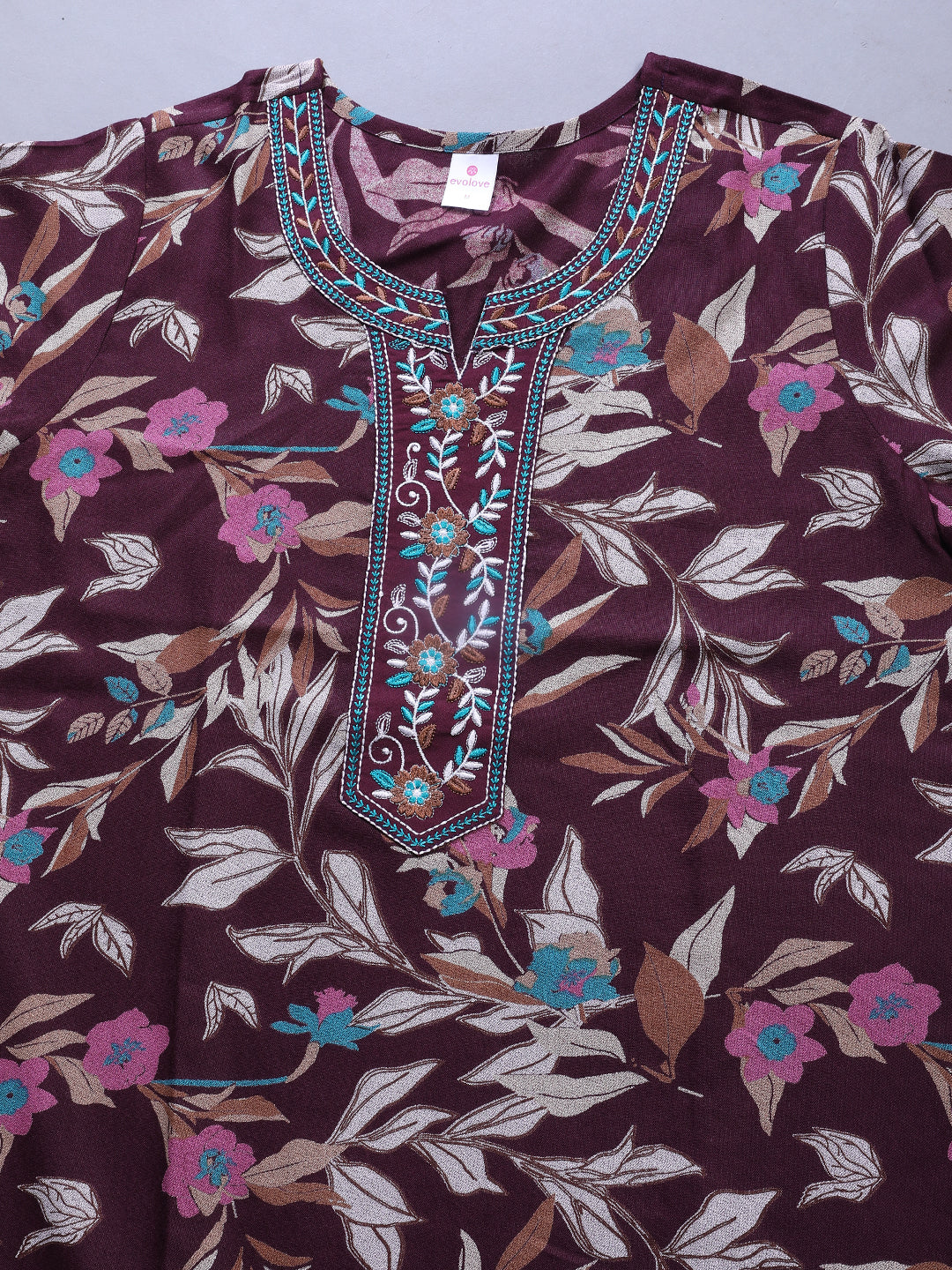 Alpine Nighty with Side Pocket & Neckline Embroidery | Printed