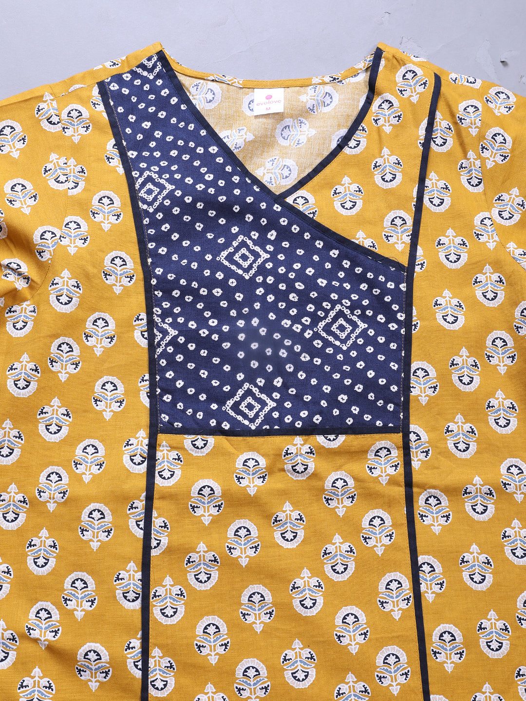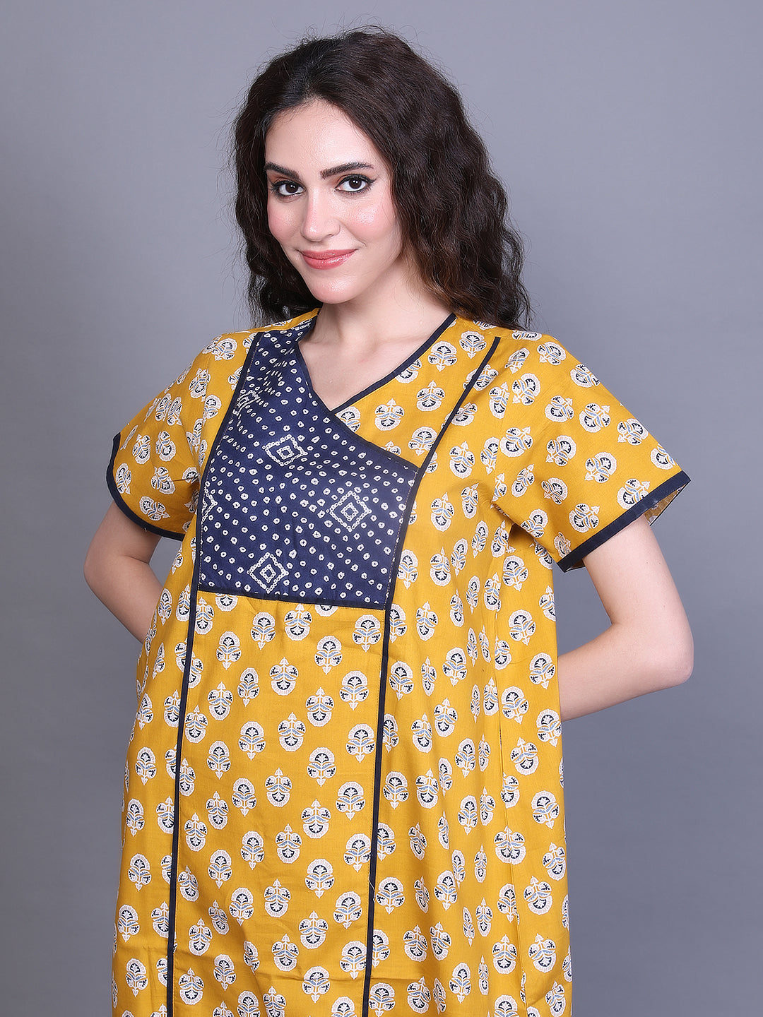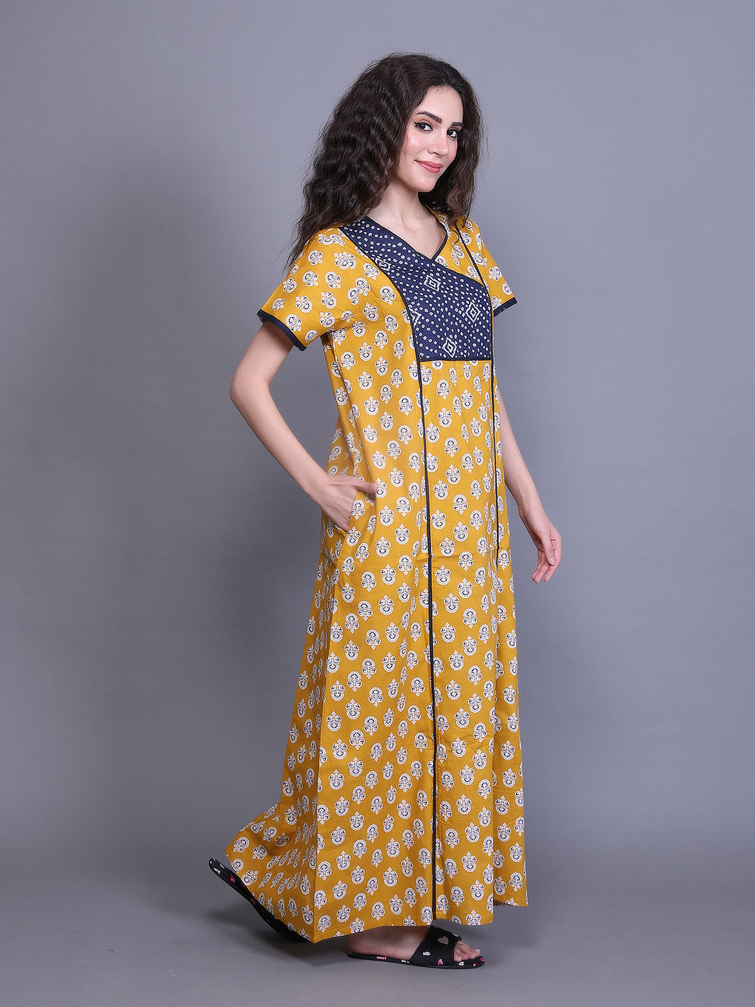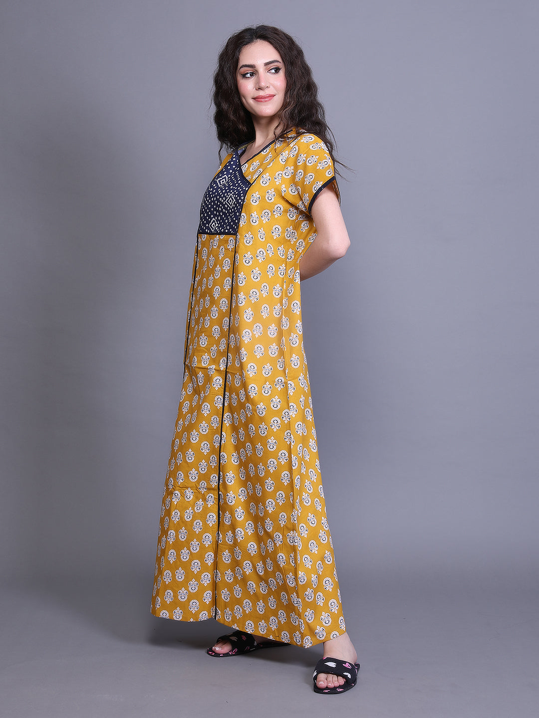 Cotton Nighty Maxi for Women with Side Pocket | Printed Short Sleeves Full Length