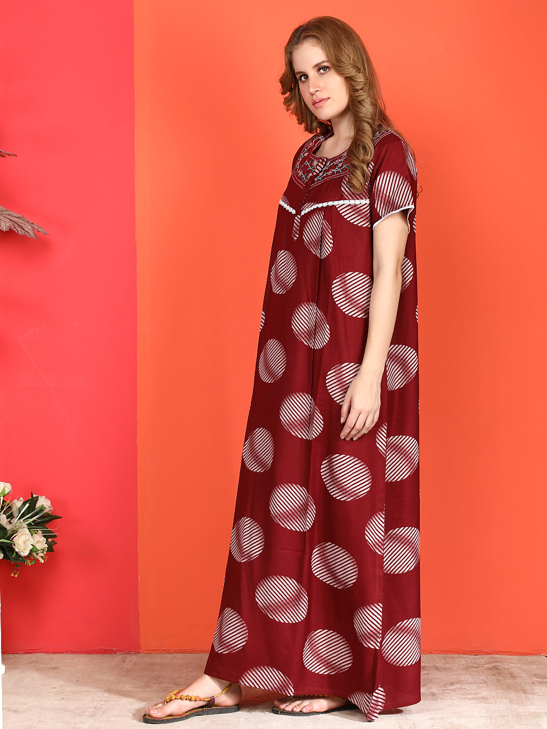 🌸 Evolove Alpine Nighty with Side Pocket & Neckline Embroidery | Full-Length | Side Pocket