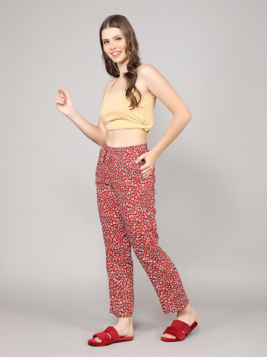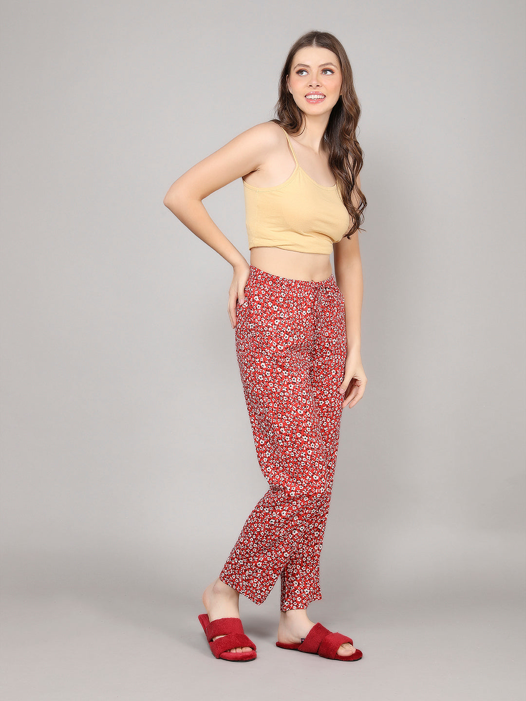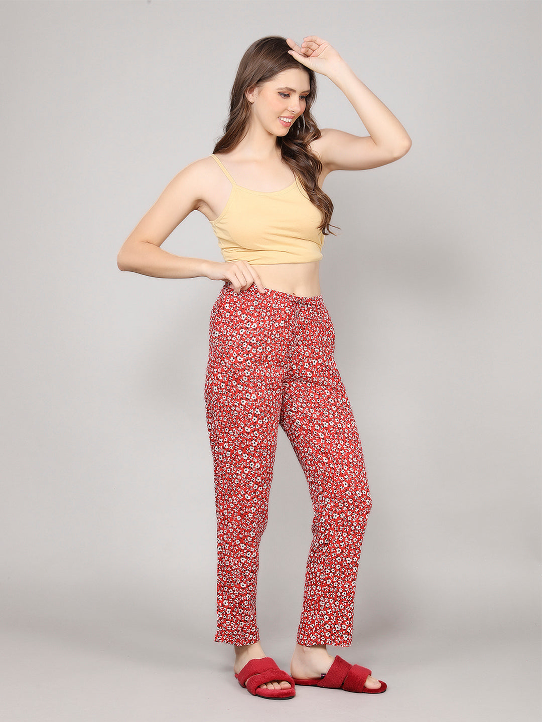 Women's Cotton Printed Pyjama Relaxed Lounge Pants With Pockets