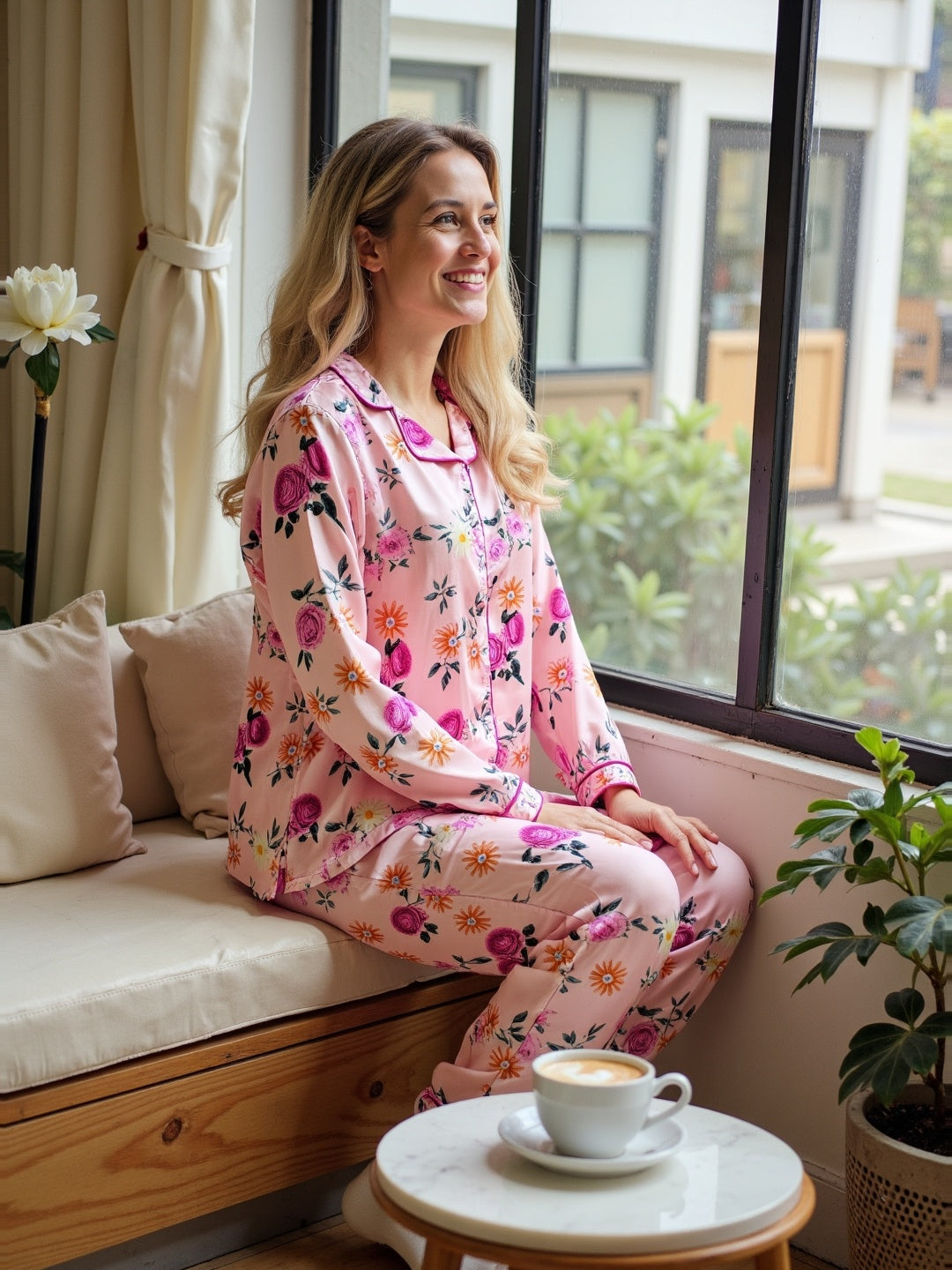 Evolove Women's Collared Full Sleeves Night Suit/Top & Pyjama Set Super Soft Comfortable